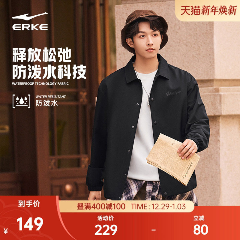 鸿星尔克外套男2025冬季新款男士运动防泼水风衣工装教练夹克上衣
