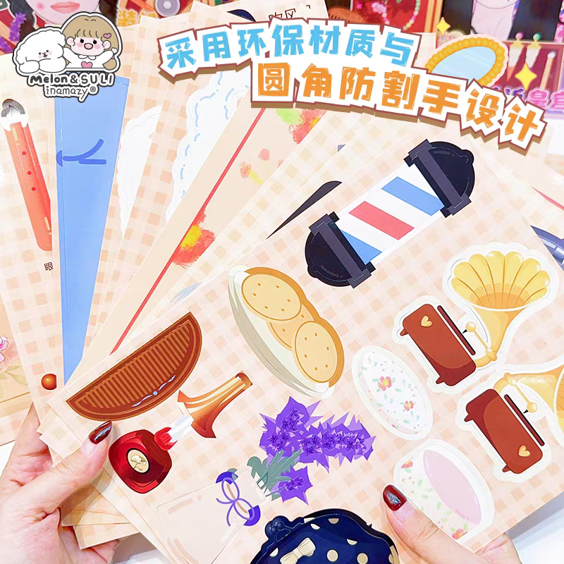 萌崽新款学霸学渣果冻贴纸安静书儿童免裁剪手工粘贴DIY女孩趣味玩具