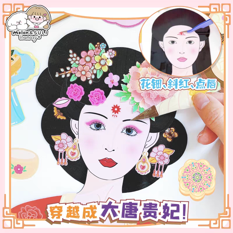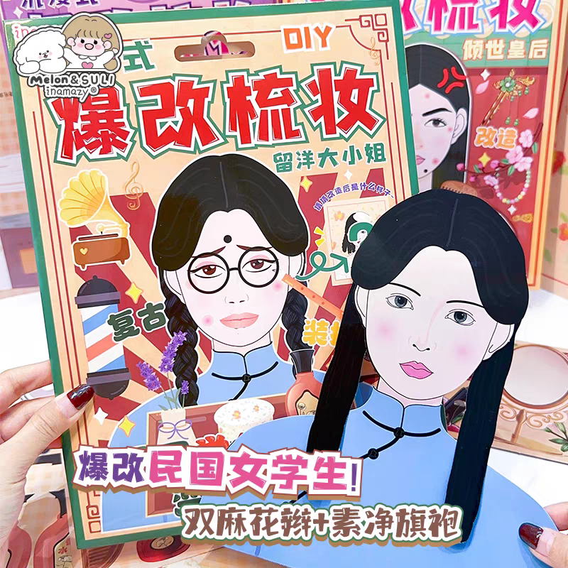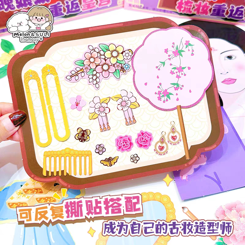 inamazy爆改梳妆换装贴纸小手工DIY解压捏捏乐女孩化妆玩具免裁剪