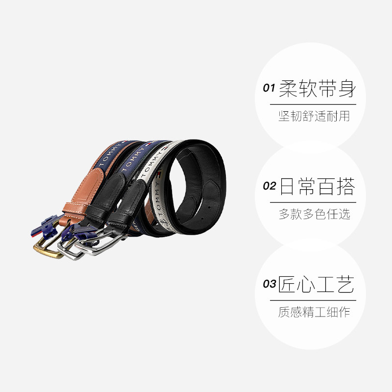 【自营】TOMMY HILFIGER汤米男士帆布腰带时尚休闲百搭针扣皮带潮