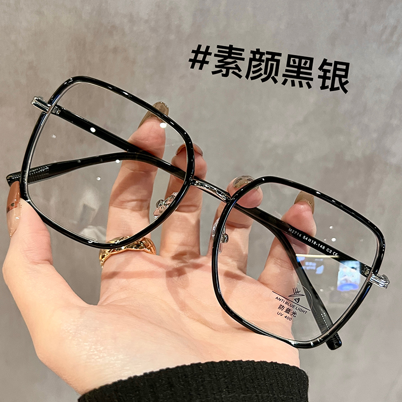 超轻细黑框眼镜女近视可配有度数高级感素颜大框大脸显瘦眼睛框镜