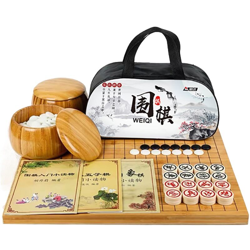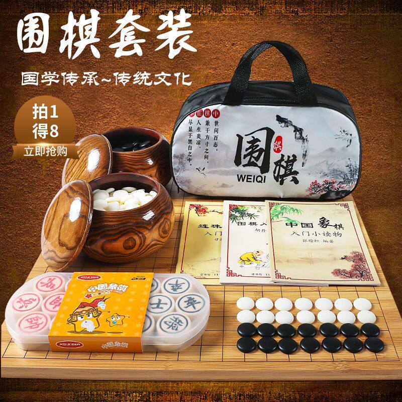 围棋套装十九路 初学者儿童 五子棋学生 成人实木 双面棋盘赠象棋
