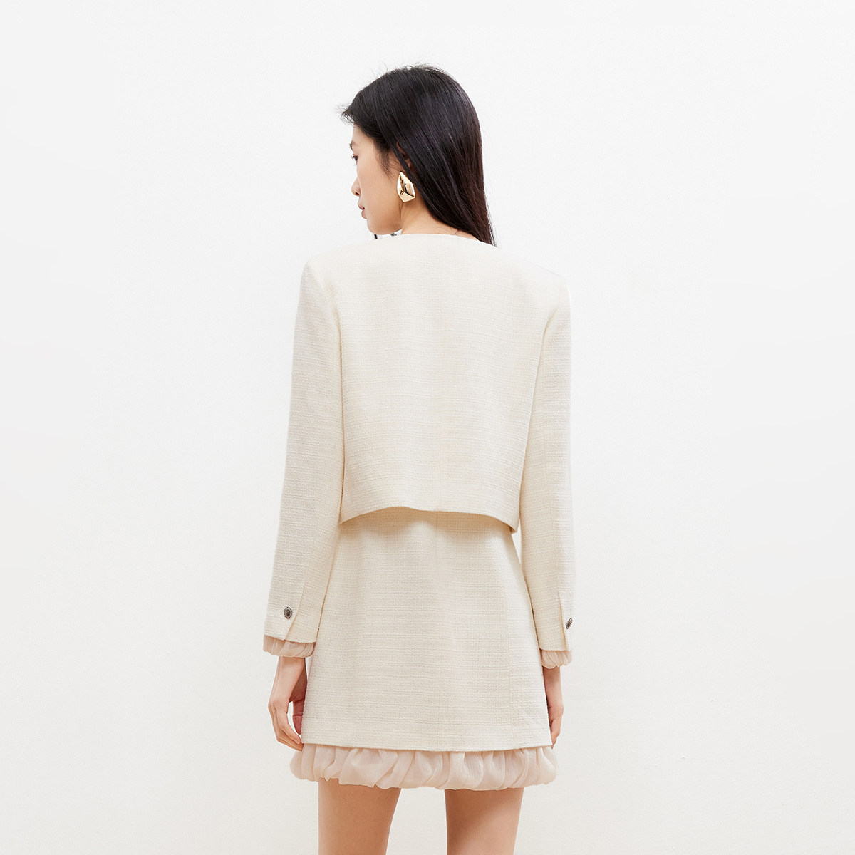 Vero Moda套装2026春季新款含棉撞色小香风外套连衣裙326121007