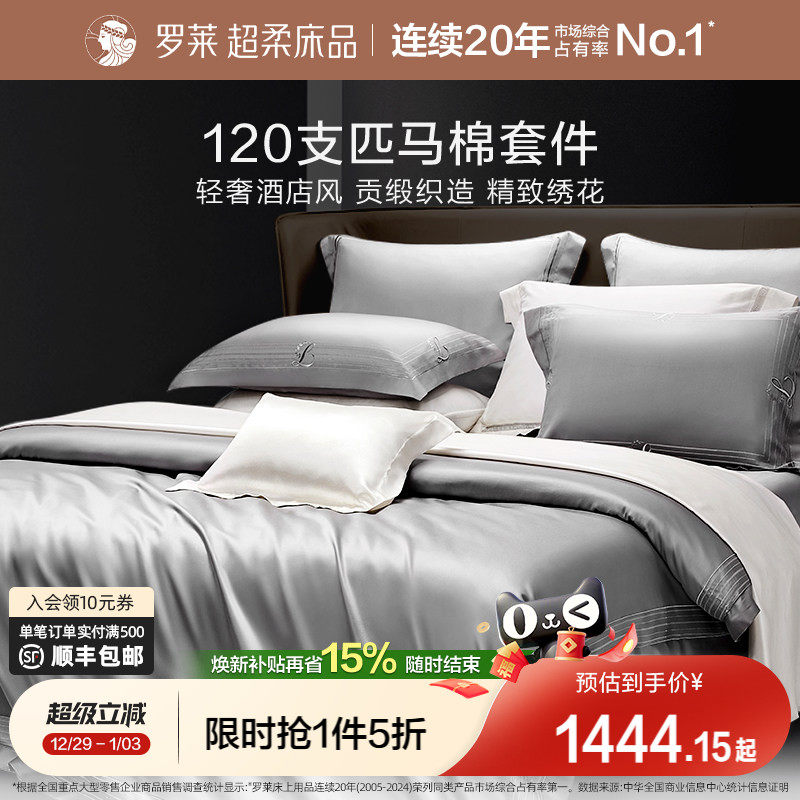 罗莱家纺120支匹马棉四件套全棉纯棉轻奢贡缎床单被套四季套件