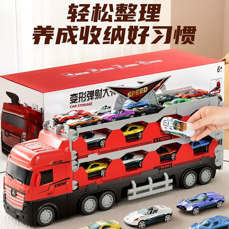 折叠变形大卡车轨道弹射汽车合金工程车3男孩六一儿童节礼物6小车