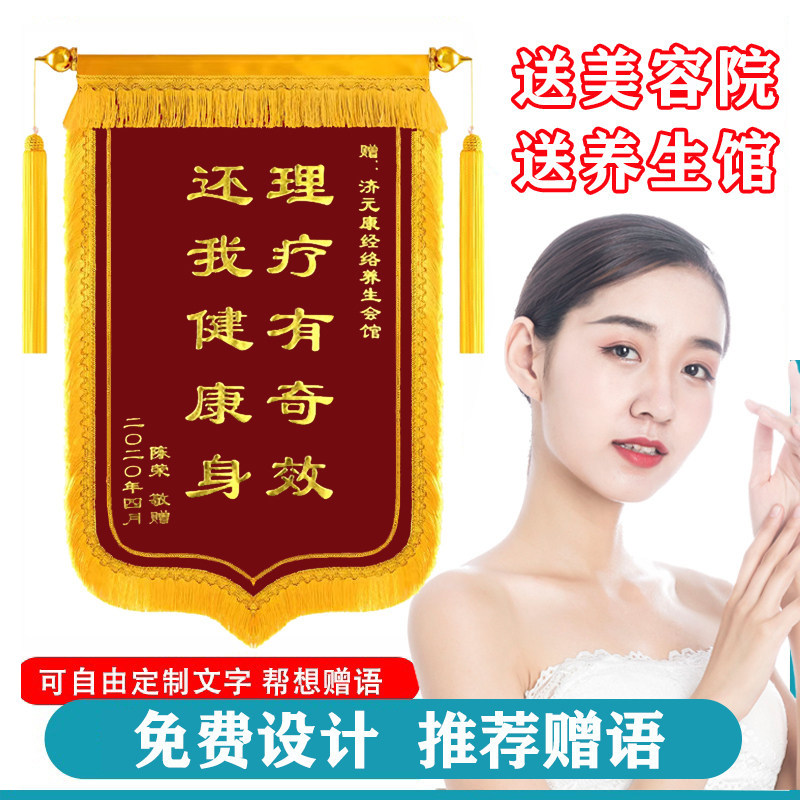 锦旗定制赠送感谢美容院养生馆理疗推拿祛痘祛斑减肥瘦身旌旗定做