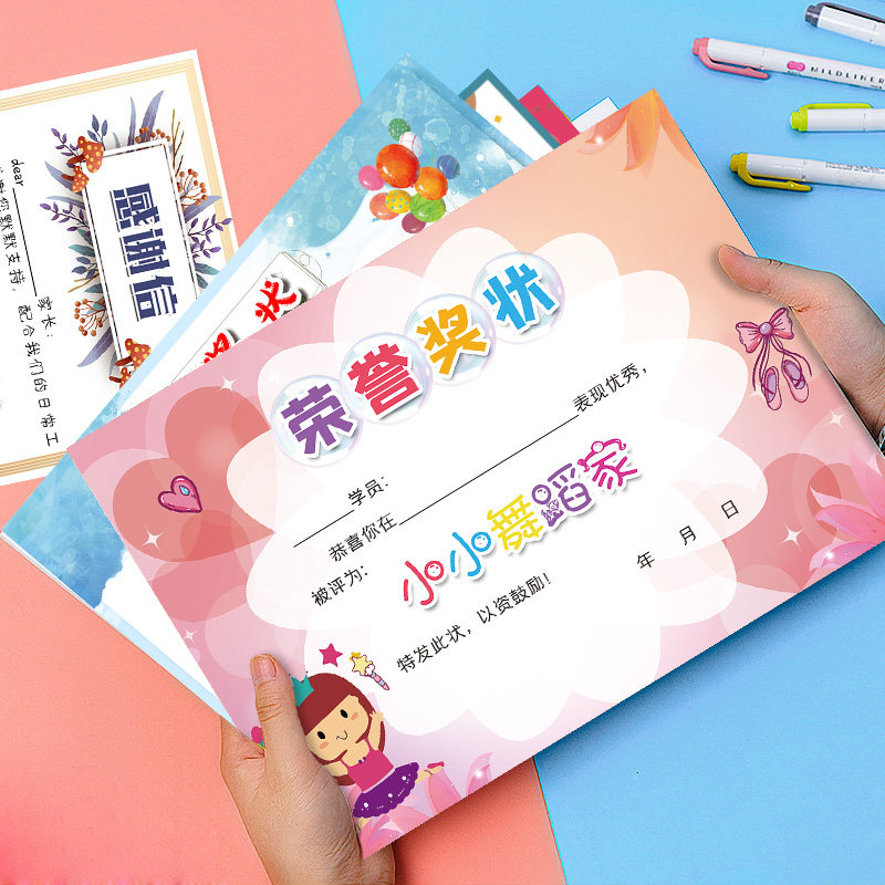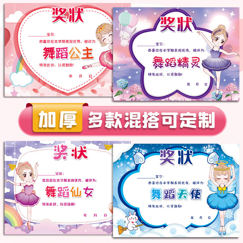 A4加厚铜版纸 舞蹈班培训班舞蹈家奖状荣誉证书批发定制包邮 粉色舞蹈之星 小小舞蹈家奖