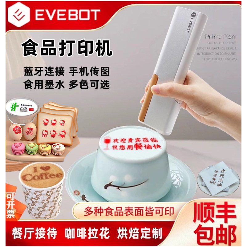 evebot亿瓦手持食品打印机咖啡拉花新派酸奶美食饼干餐盘印字神器