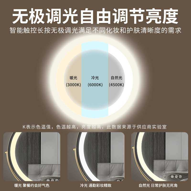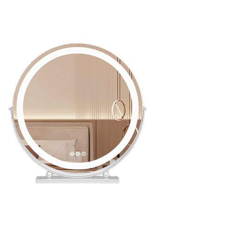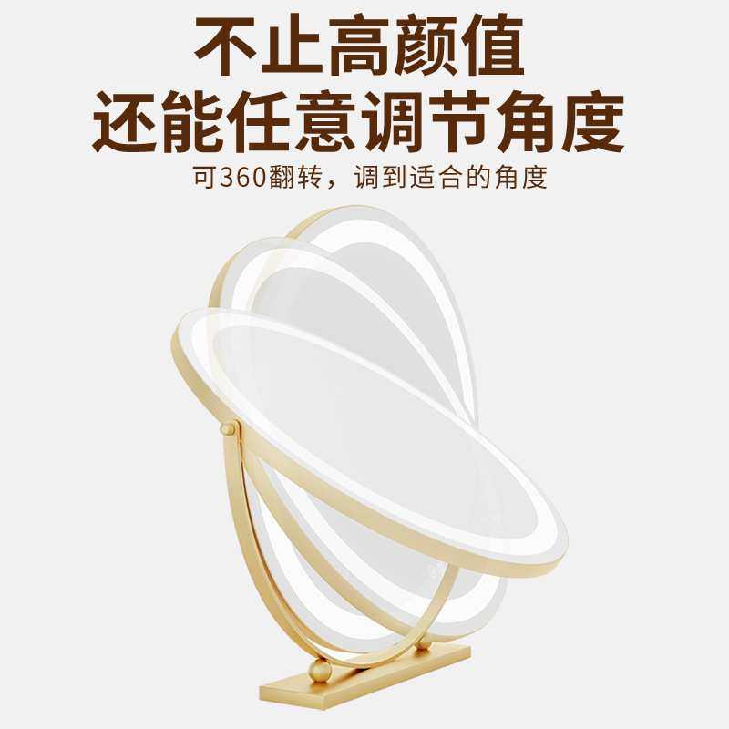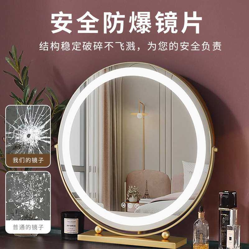 化妆镜带灯led补光梳妆镜卧室梳妆台镜子桌面三色调光镜三色光