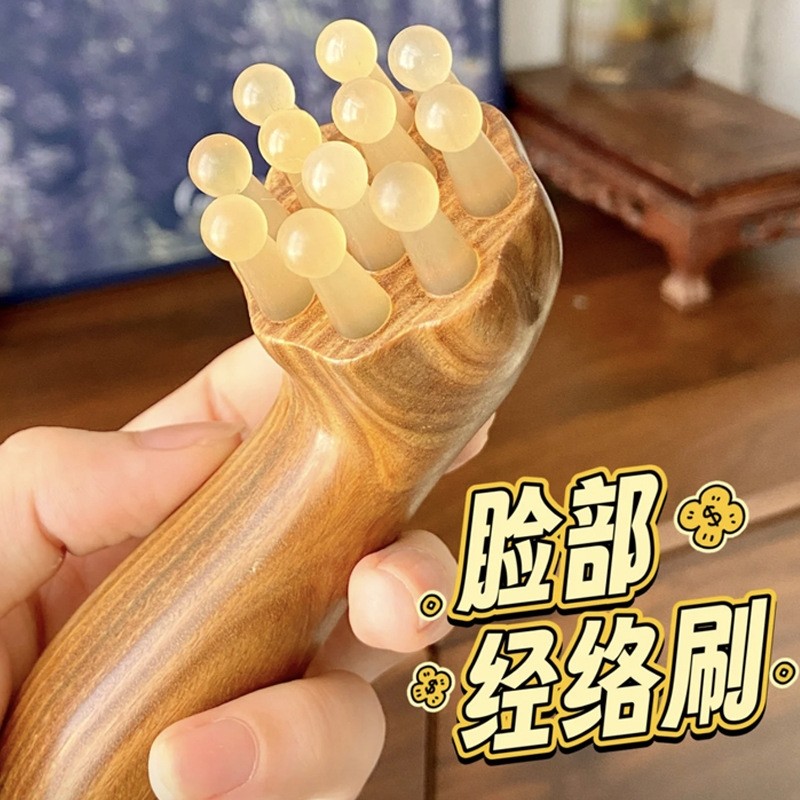 绿檀木羊角按摩刷小烟斗面部肩颈拨筋疏通按摩梳经络刷护肤拨筋棒