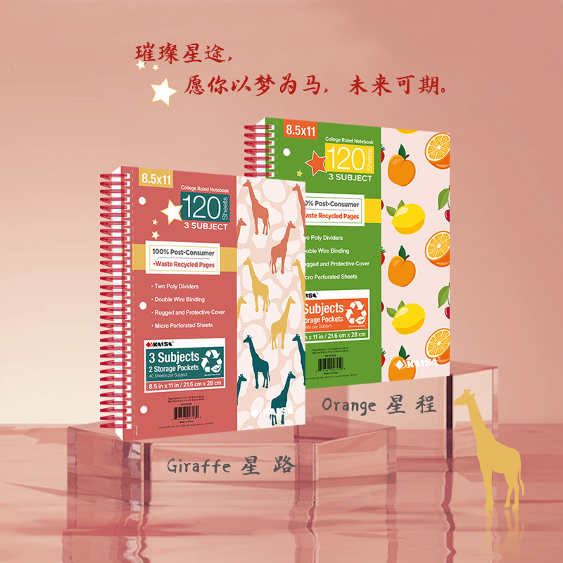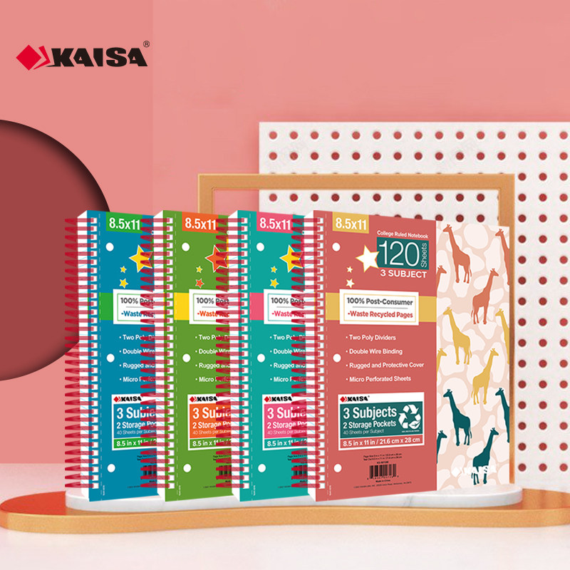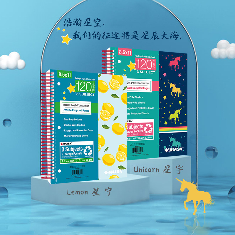 五科目送荧光贴凯萨KAISA星宇美式笔记本三科目3孔双线圈笔记本120张A4横线大学生考研学生分栏易撕线含插袋