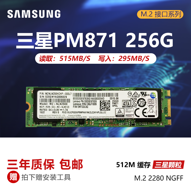 三星PM871 128G 256G 512G M.2 2280 SATA笔记本台式电脑固态硬盘