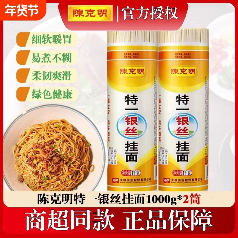 陈克明面条特一香菇鸡蛋挂面银丝玉米面老妈手工挂面1000g*2筒