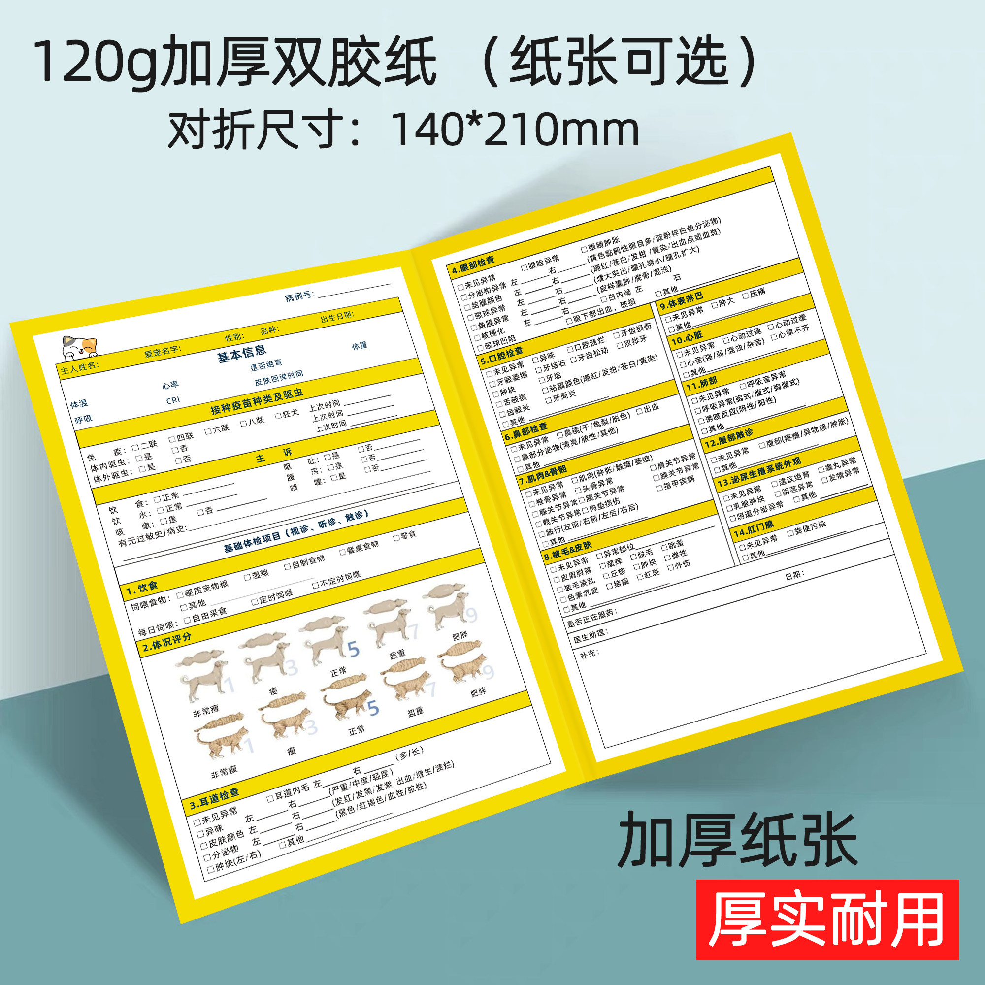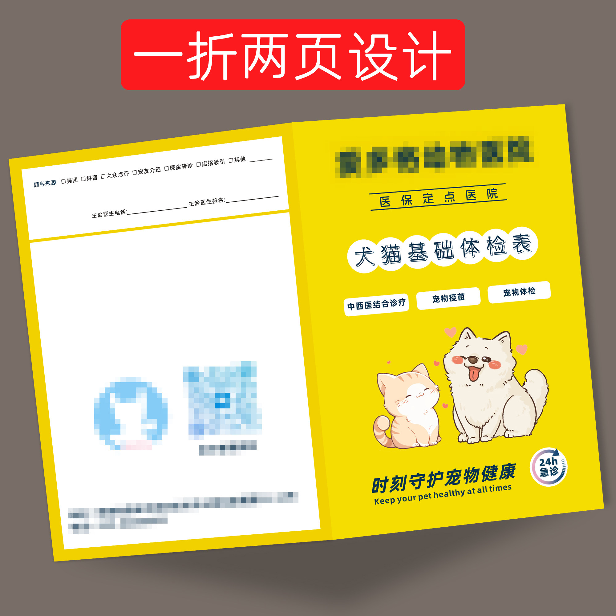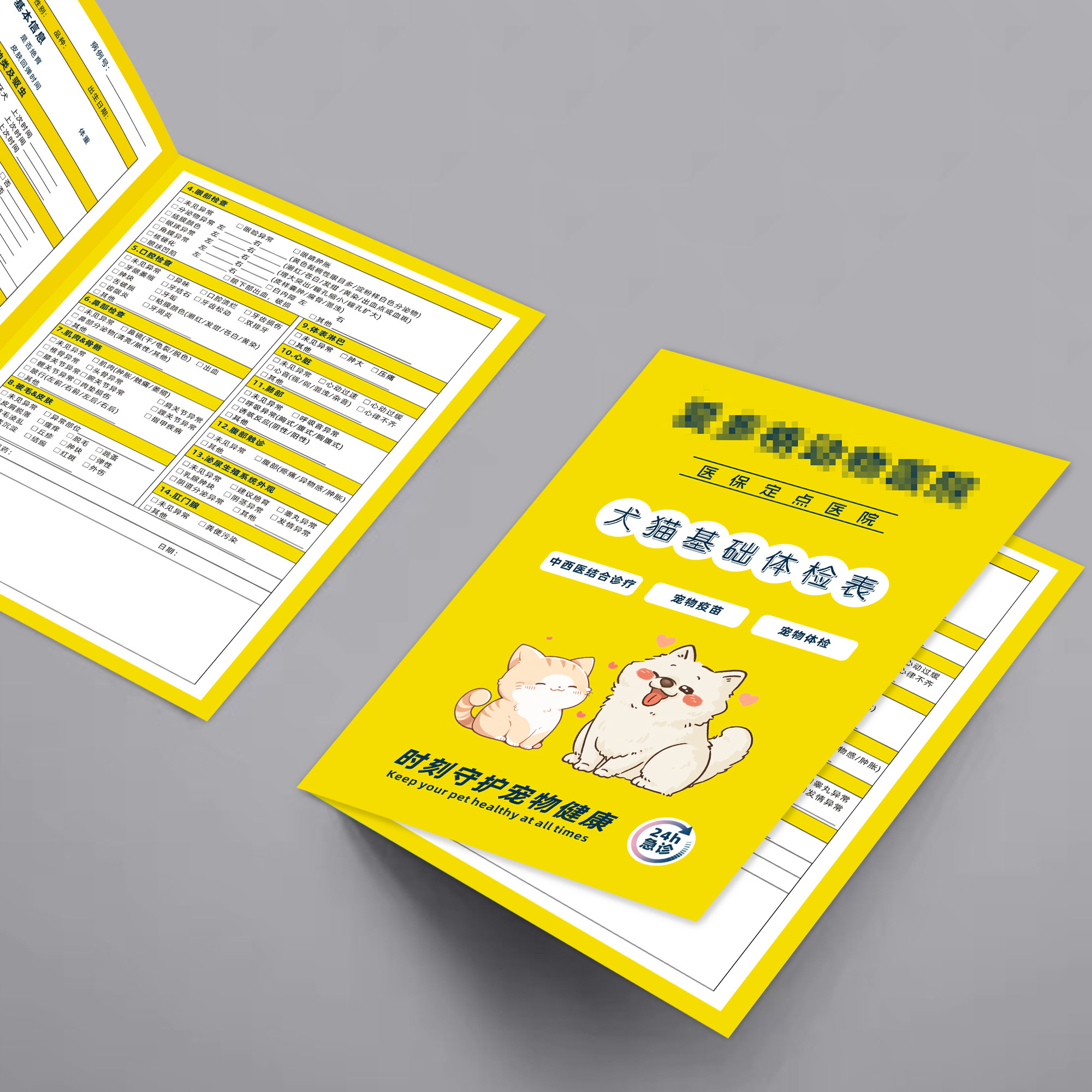 宠物猫犬基础体检表宠物店项目检查报告单一折两页动物就诊咨询单
