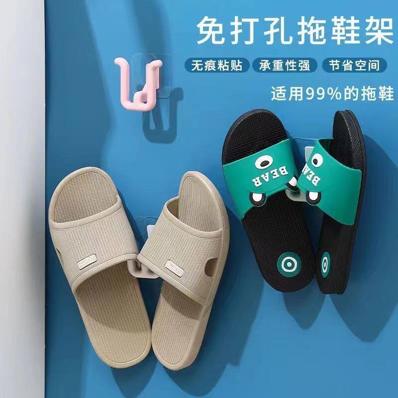 浴室拖鞋架壁挂式免打孔鞋架挂式墙上卫生间收纳厕所门后拖鞋挂架