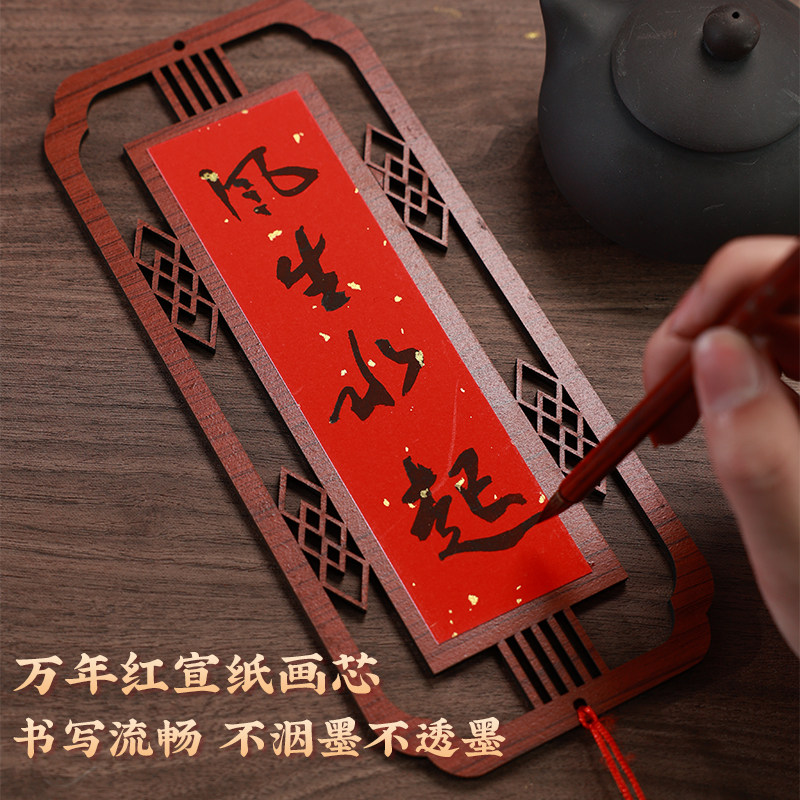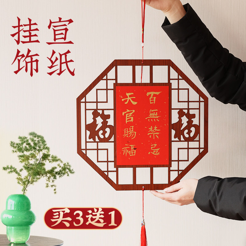新中式创意万年红洒金福字木质镂空挂件空白福字红纸书法宣纸斗方手写专用红纸灯笼春节喜庆装饰福字纸挂件