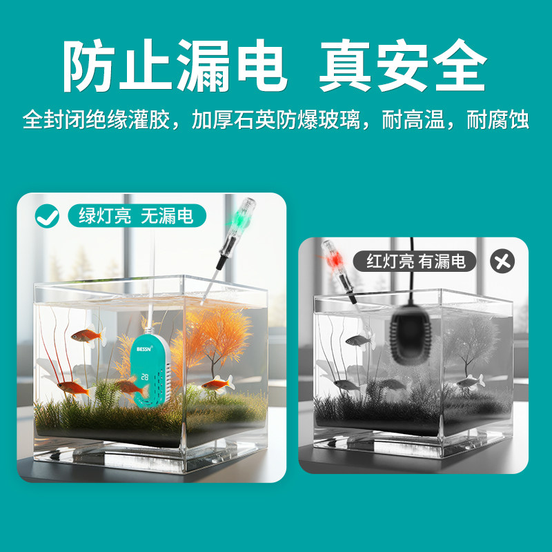 BESSN鱼缸加热棒自动恒温离水断电加热器小型迷你乌龟专用变频