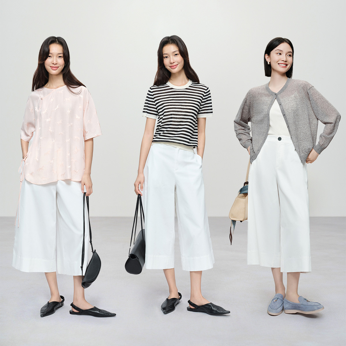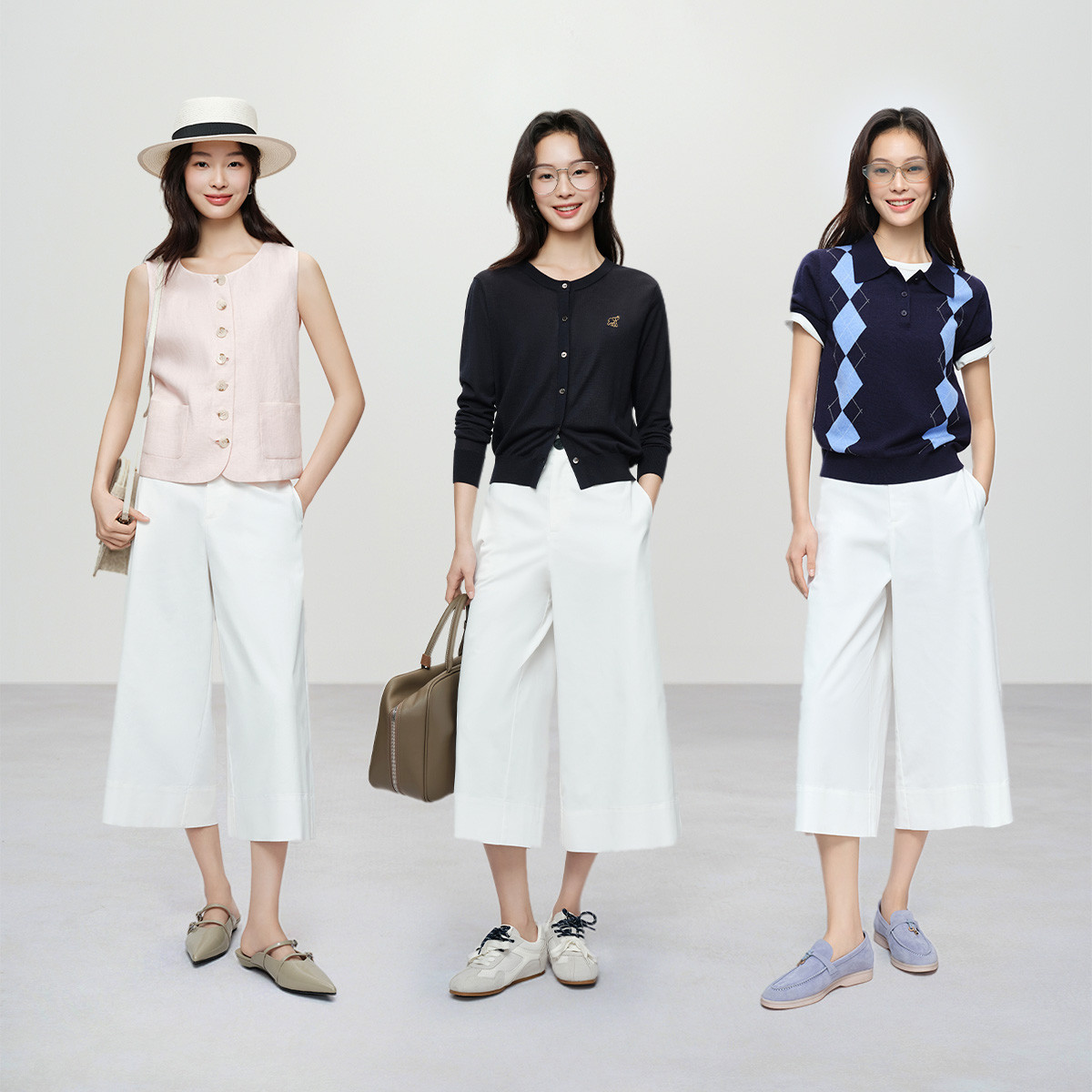 【防透防晒】白色裙裤八分A字naivee纳薇26夏新款时髦阔腿裤通勤