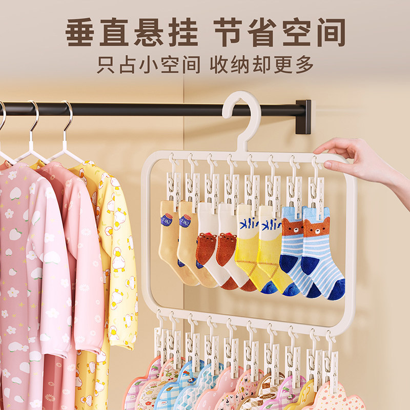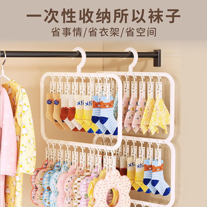 袜子夹晾衣架多夹子儿童衣架衣柜双层收纳衣架家用阳台晒袜子神器
