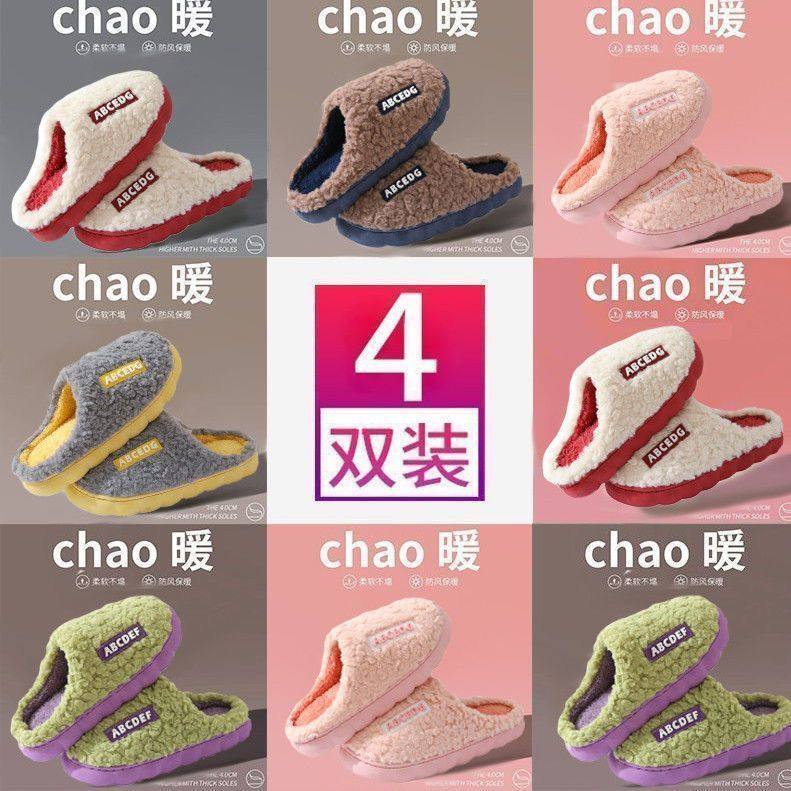 4棉拖鞋女家用待客冬季室内家居情侣保暖毛拖鞋男批发厚底鞋子