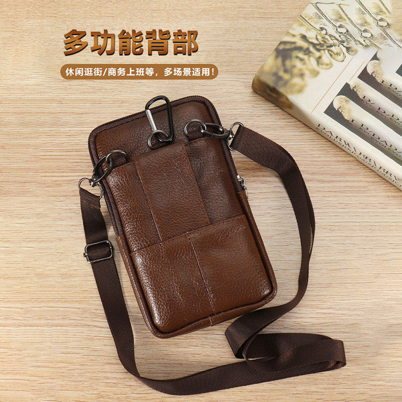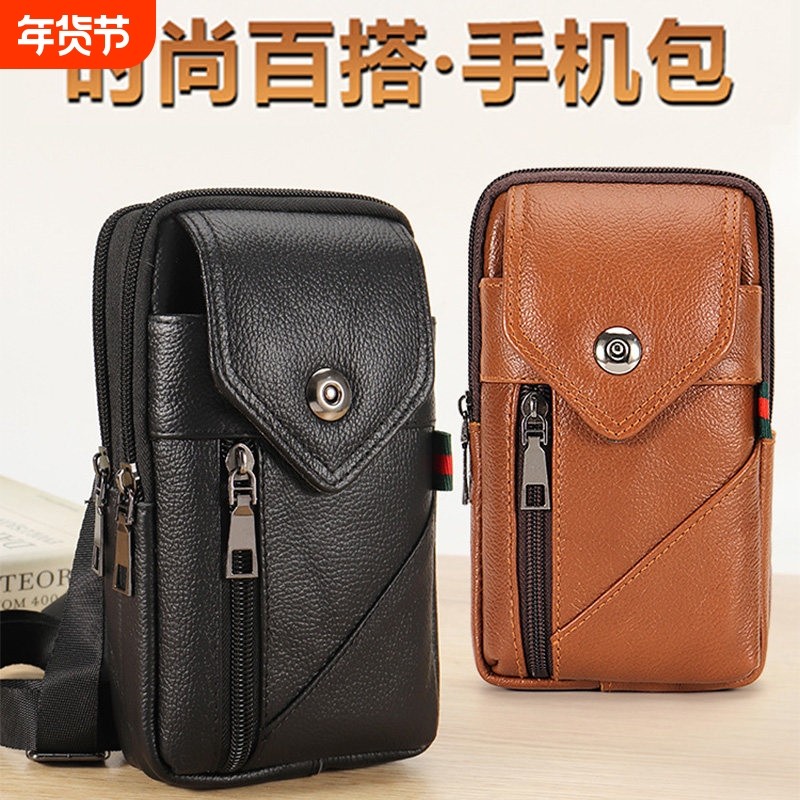 新挂腰牛皮装放手机零钱用的包男穿皮带手机袋中老年人跨腰式腰包