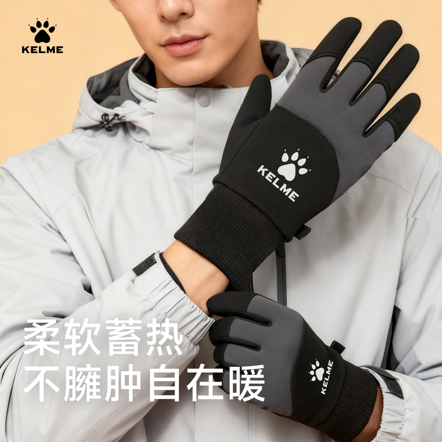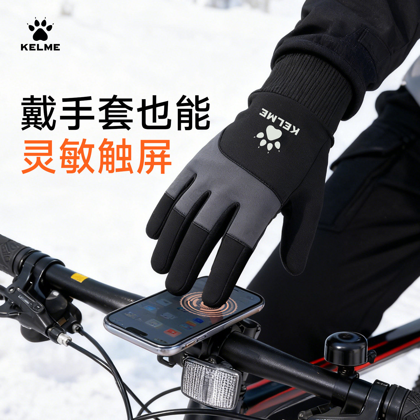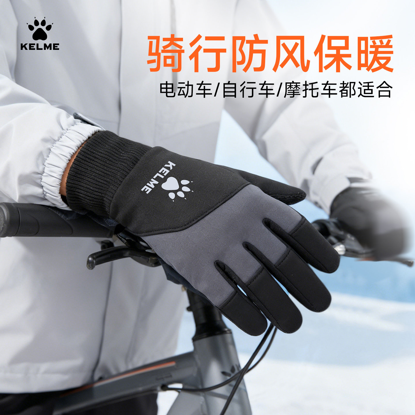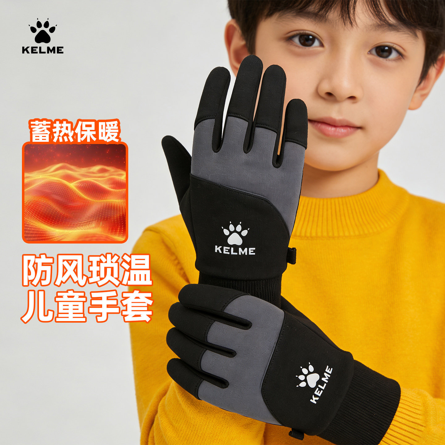 KELME卡尔美防风成人加绒保暖运动手套儿童足球跑步触屏骑行手套