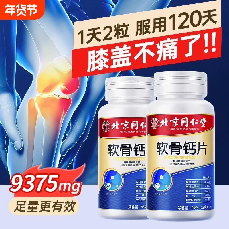 北京同仁堂软骨钙片中老年人腿抽筋腰腿疼正品官方旗舰店护关节