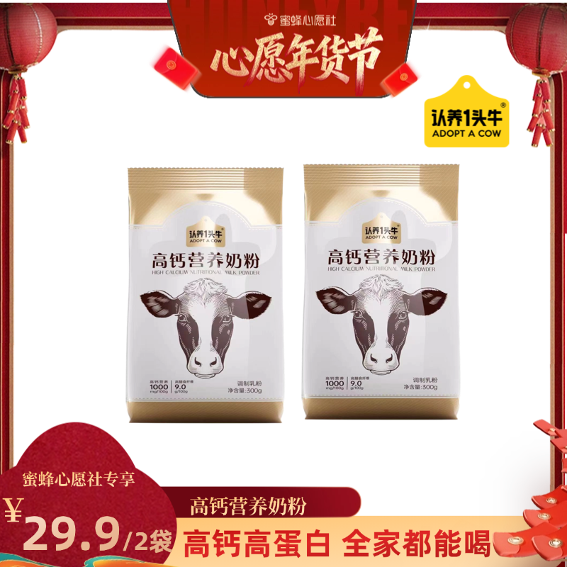 【认养一头牛年货节专场】高钙营养全家换季奶粉300g*2袋