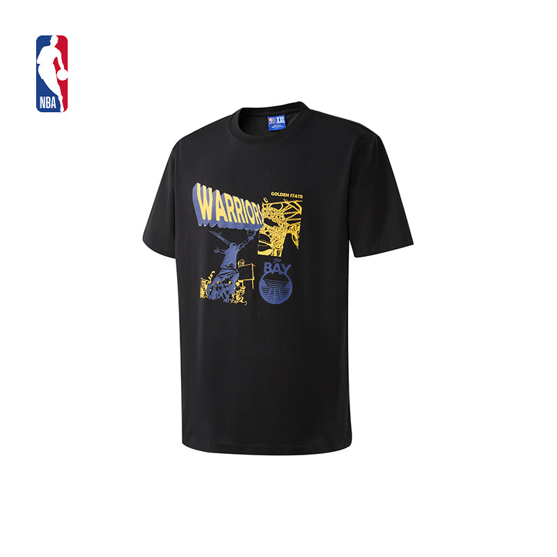 NBA球队文化系列勇士队湖人队宽松版黑色T恤