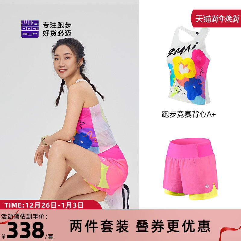 必迈跑步训练套装男女竞赛背心A+二合一竞速短裤2寸运动休闲慢跑