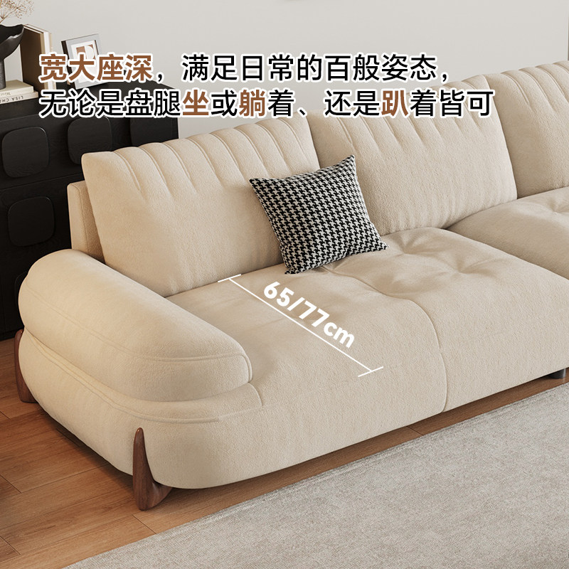 布艺沙发奶油风云朵棉花糖大小户型现代简约三人位弧形猫抓布沙发