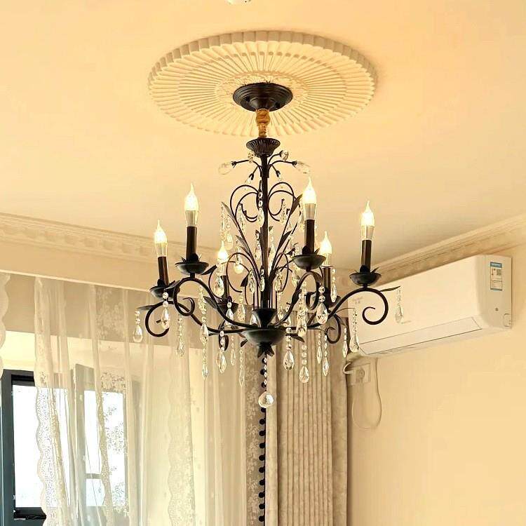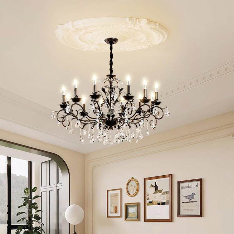 法式黑色水晶吊灯美式简约复古乡村客厅大气装饰高级感卧室房间灯