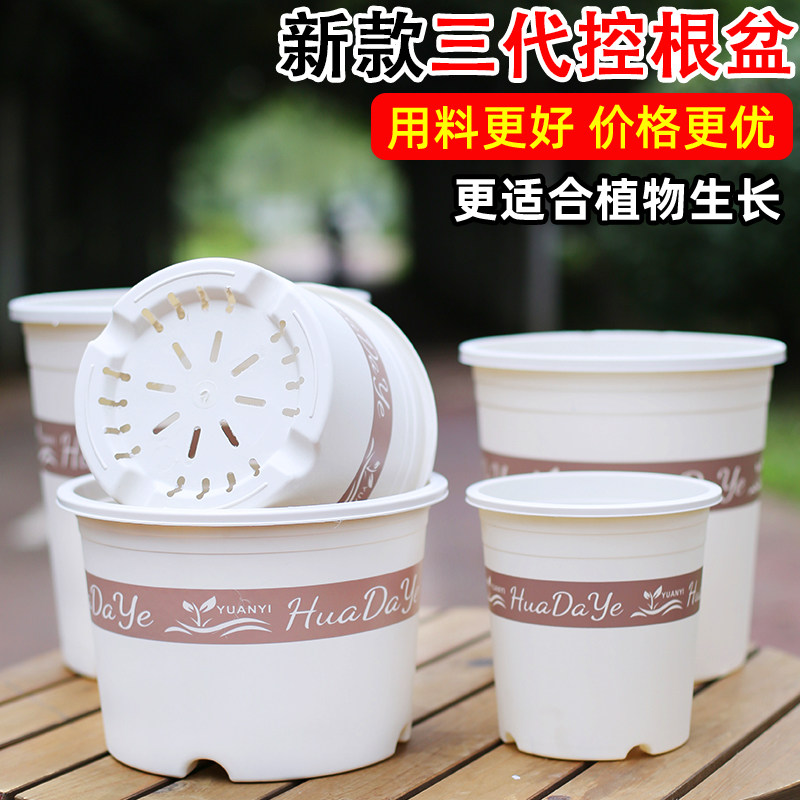 花大爷圆形控根花盆加厚透气塑料盆栽白色三代加仑盆带托盘新款