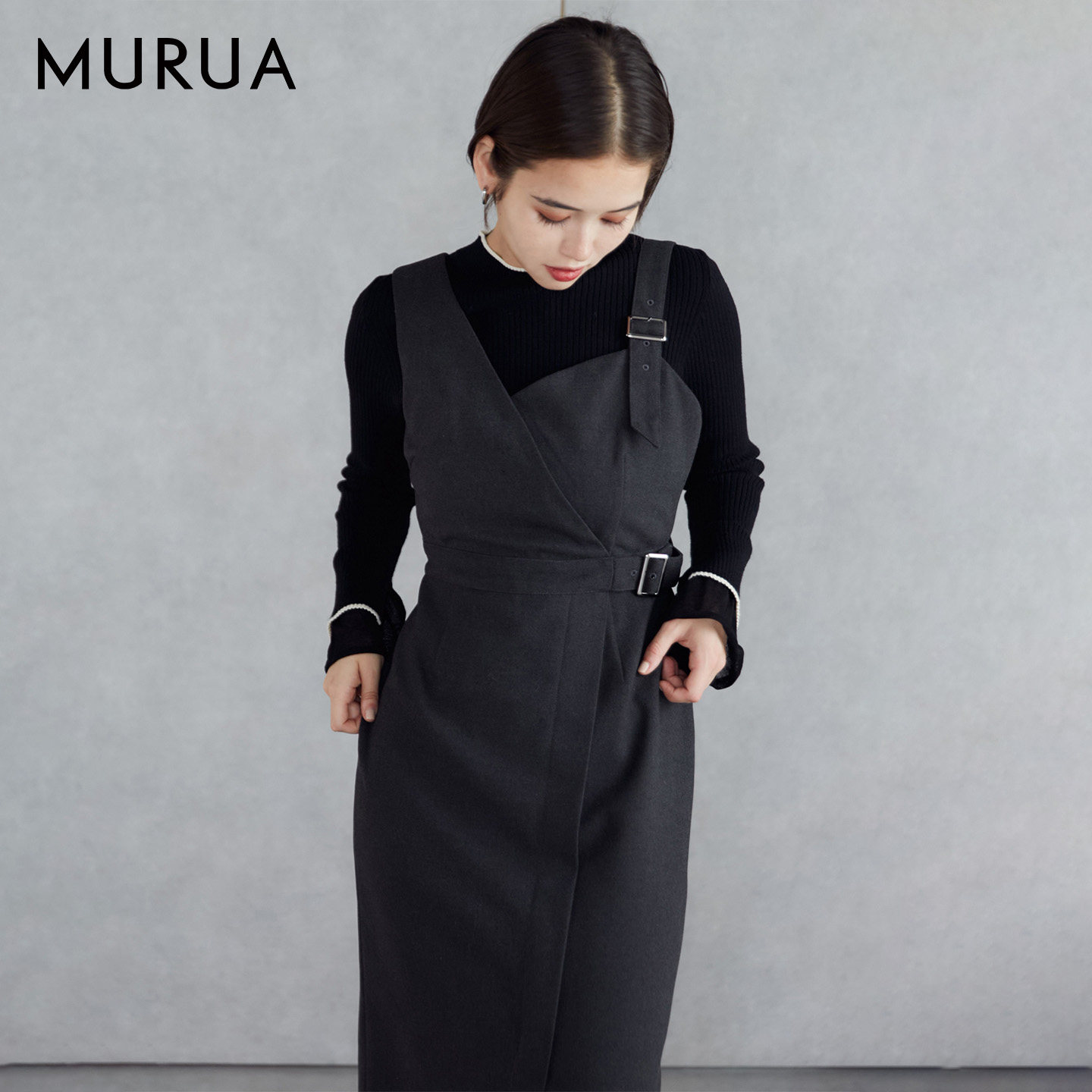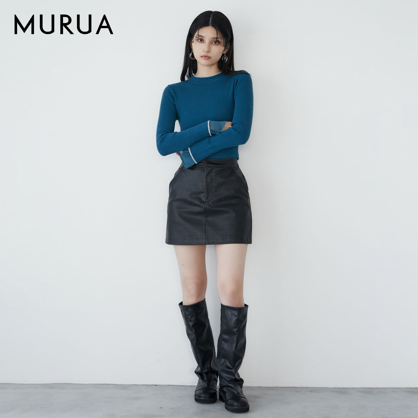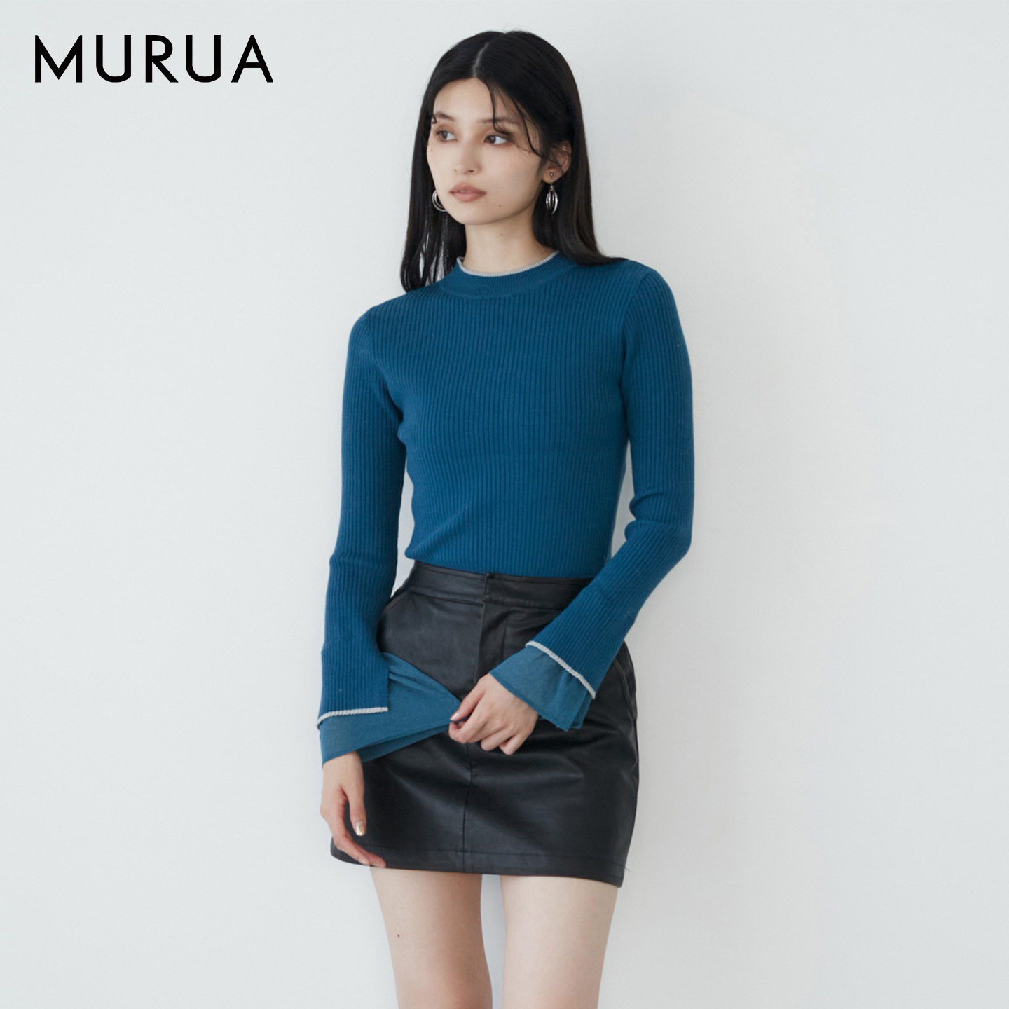 MURUA25秋季新品高级简约双层喇叭袖罗纹毛针织衫上衣0125426900