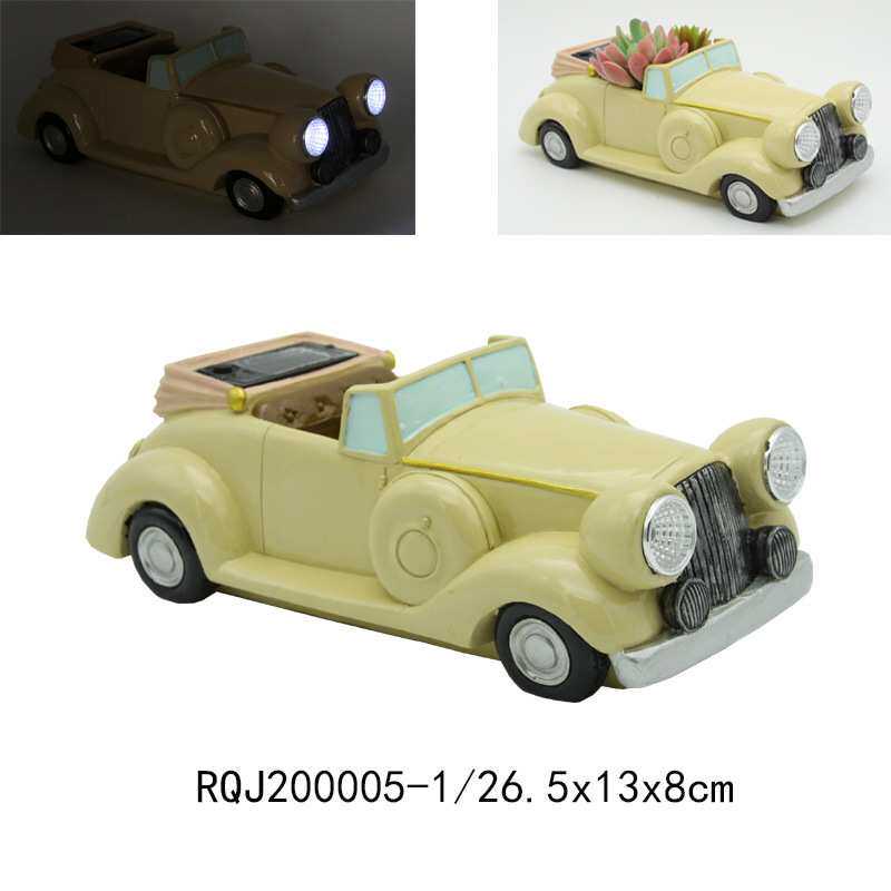 树脂造景摆件交通工具系列古董车装饰汽车太阳能装饰灯多肉花盆