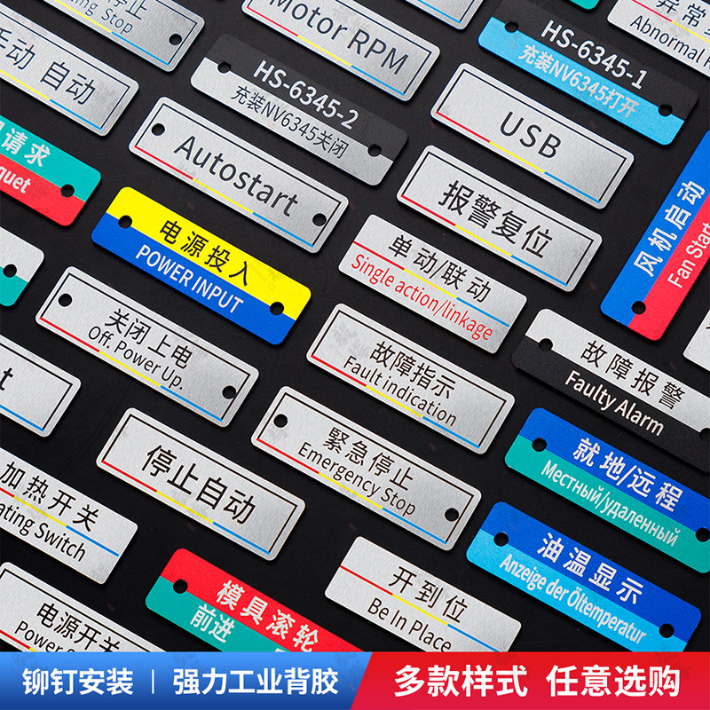 控制柜电气箱金属按钮标识牌定做22开关指示灯标识牌铭牌铝不锈钢