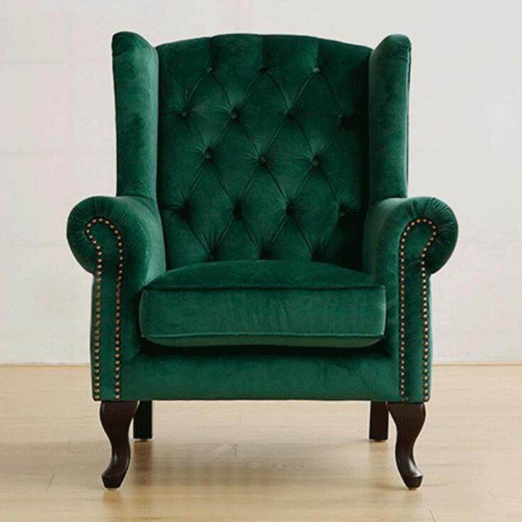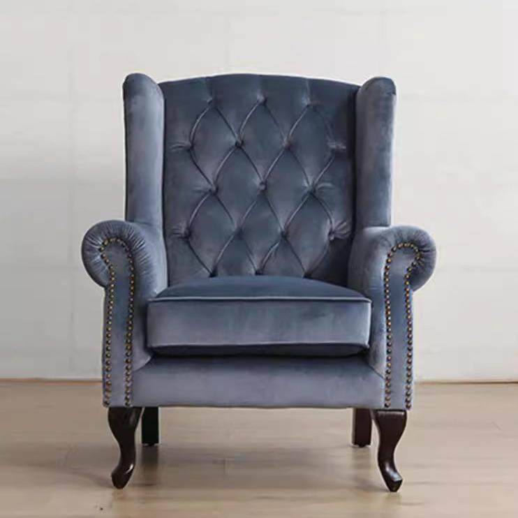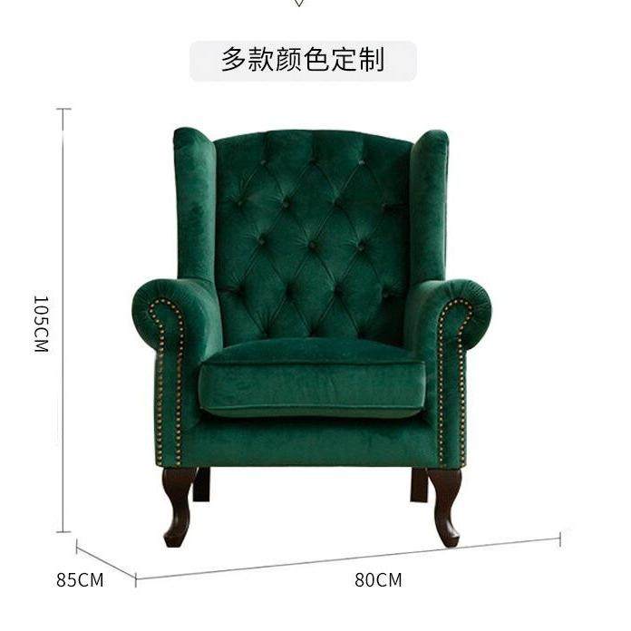 美式轻奢单人沙发乡村复古小户型实木布艺客厅欧式懒人高背老虎椅