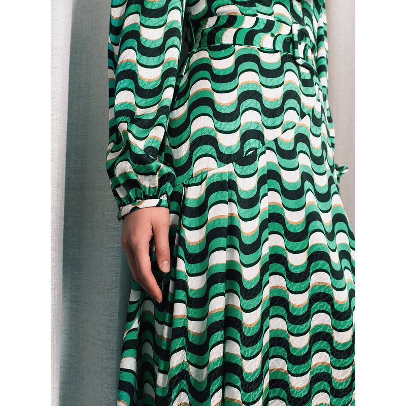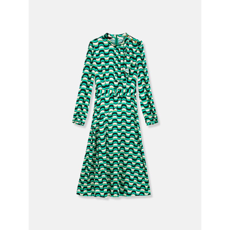 【真丝系列】YINER音儿秋季法式小立领薄荷曼波连衣裙