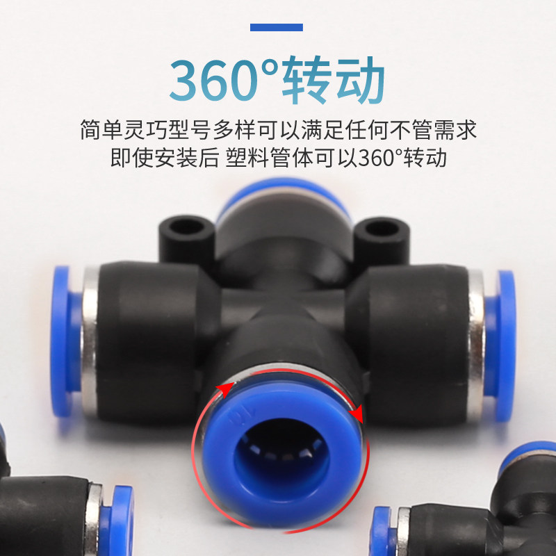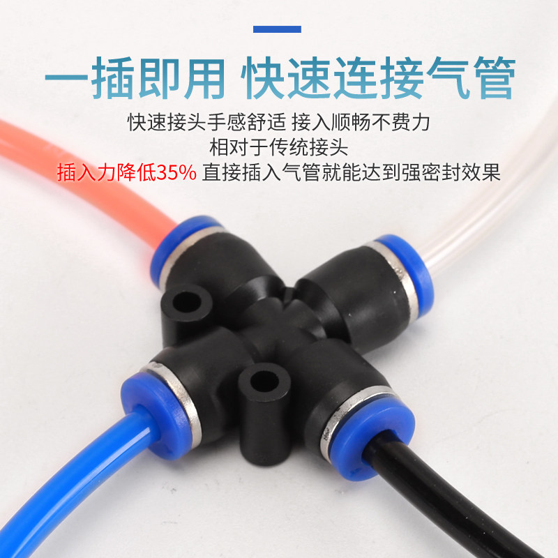气动接头PZA十字四通快速快插4 6 8 10 12mmPU气管气动元件配件