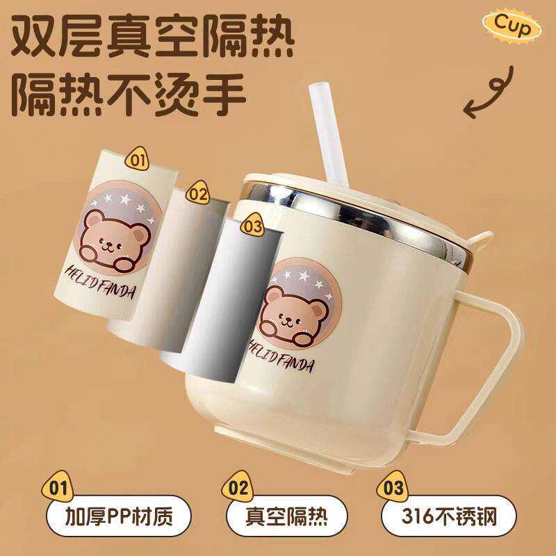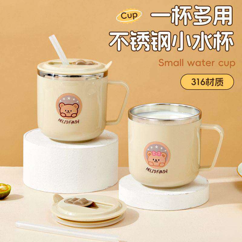 儿童水杯家用不锈钢耐摔吸管杯敞口刻度喝水杯牛奶杯宝宝学饮杯子