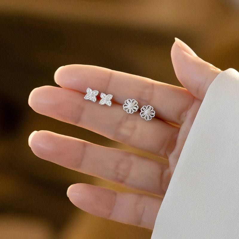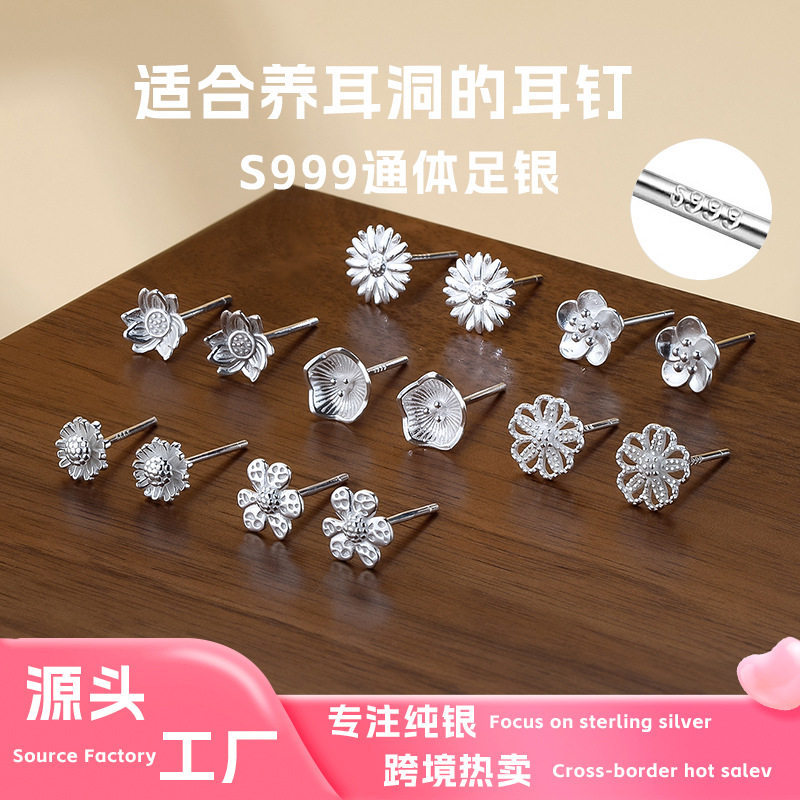 S999纯银雏菊小耳钉女小众设计高级感耳骨钉简约个性新款足银耳饰