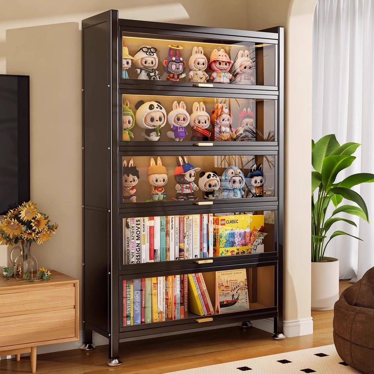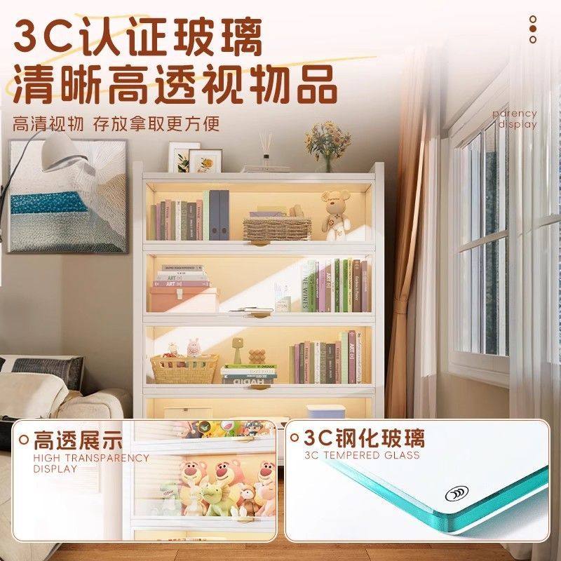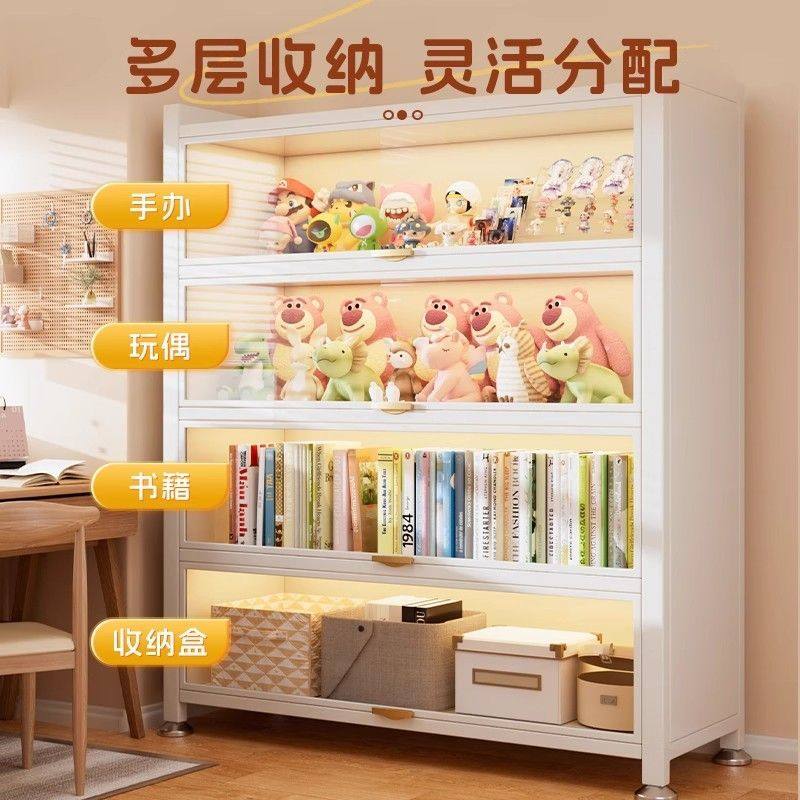 钢制书架带门玻璃书柜落地防尘铁皮手办展示柜家用储物柜收纳柜子