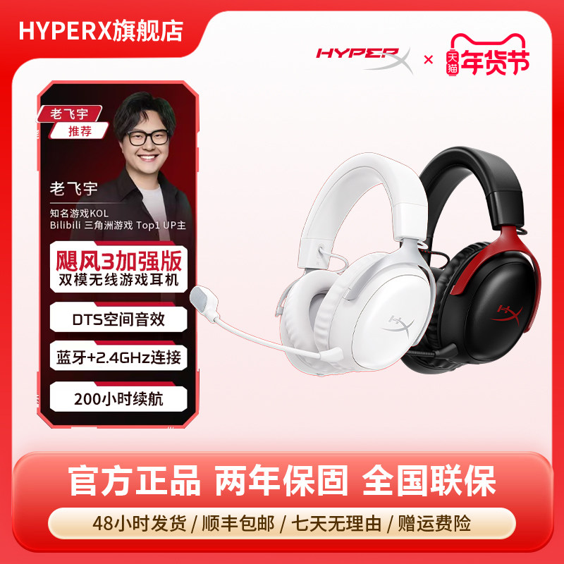 HyperX极度未知 飓风3S 无线耳机头戴式蓝牙2.4G电竞游戏电脑耳麦