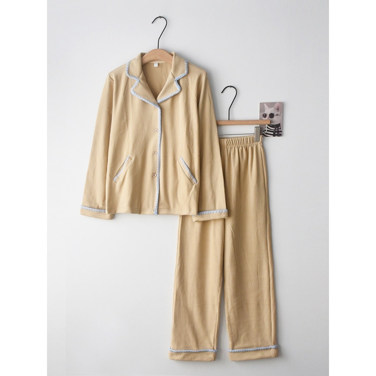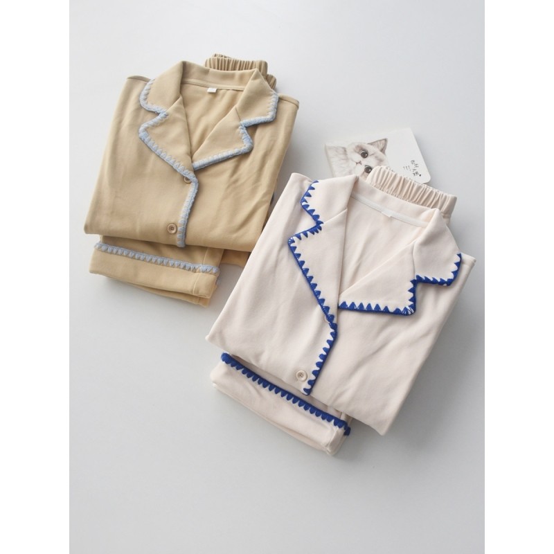 红豆贝壳刺绣牛奶德绒睡衣女秋冬季加厚保暖加绒长袖开衫家居服套
