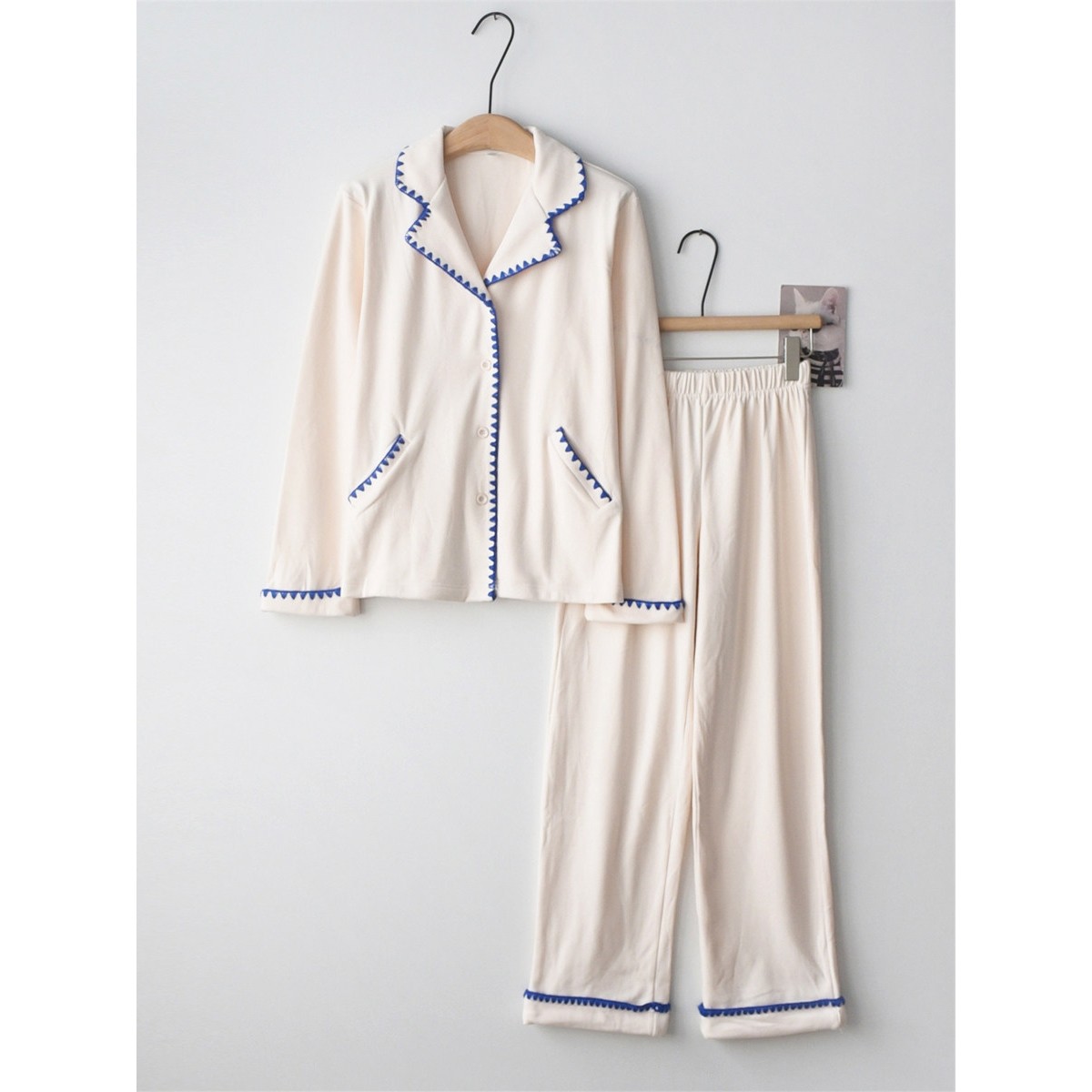 安比斯情侣睡衣舒适纯棉秋季女长袖男女同款休闲家居服套装可出门