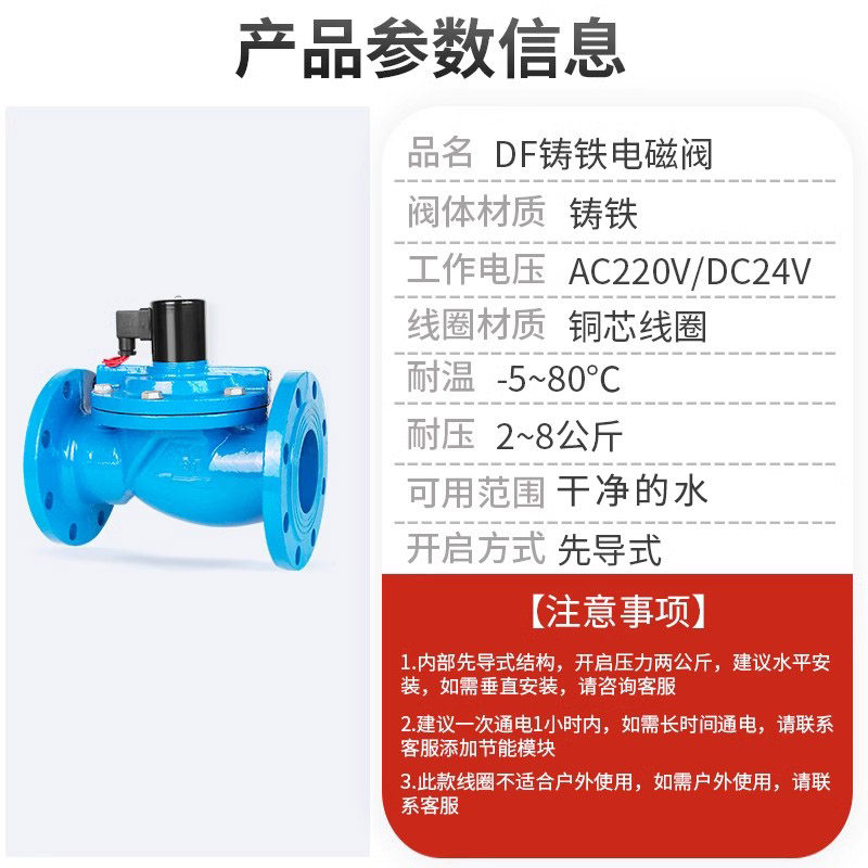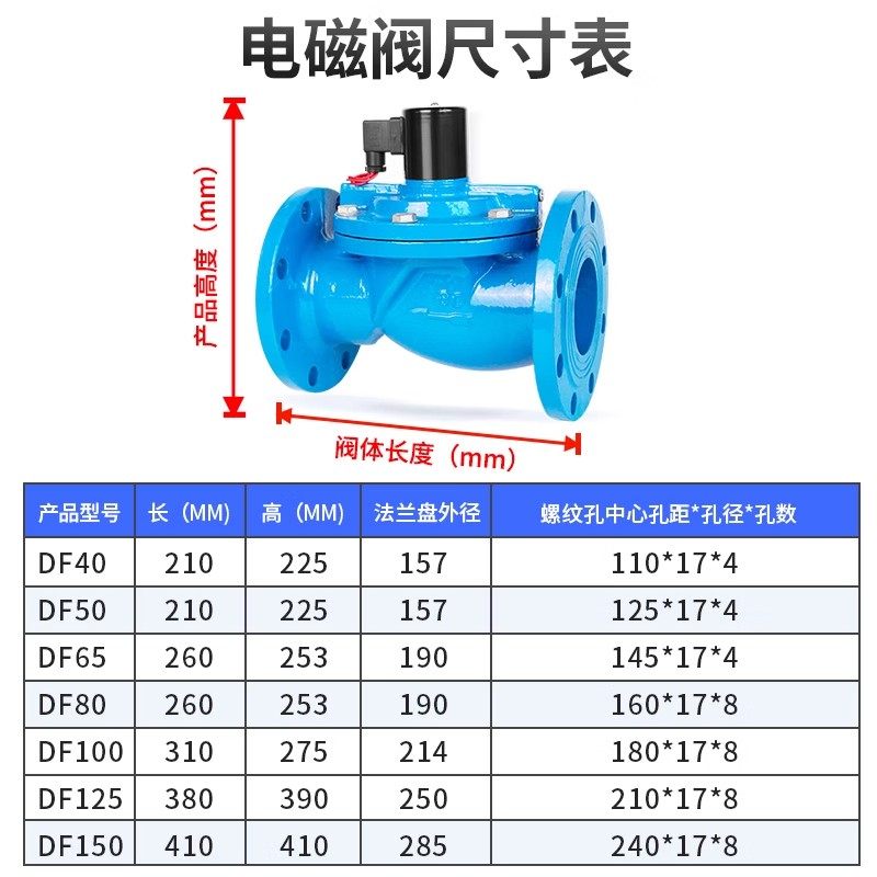 铸铁法兰电磁阀ZCS DF水阀dn100管道控制开关常闭阀门150 220V24V