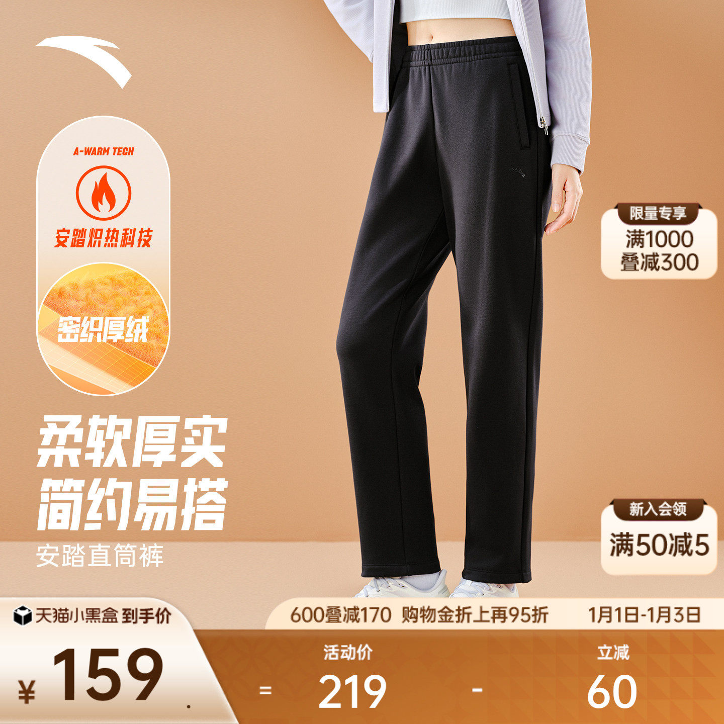 安踏运动长裤女冬季新款宽松休闲针织卫裤高弹直筒裤子162547318N