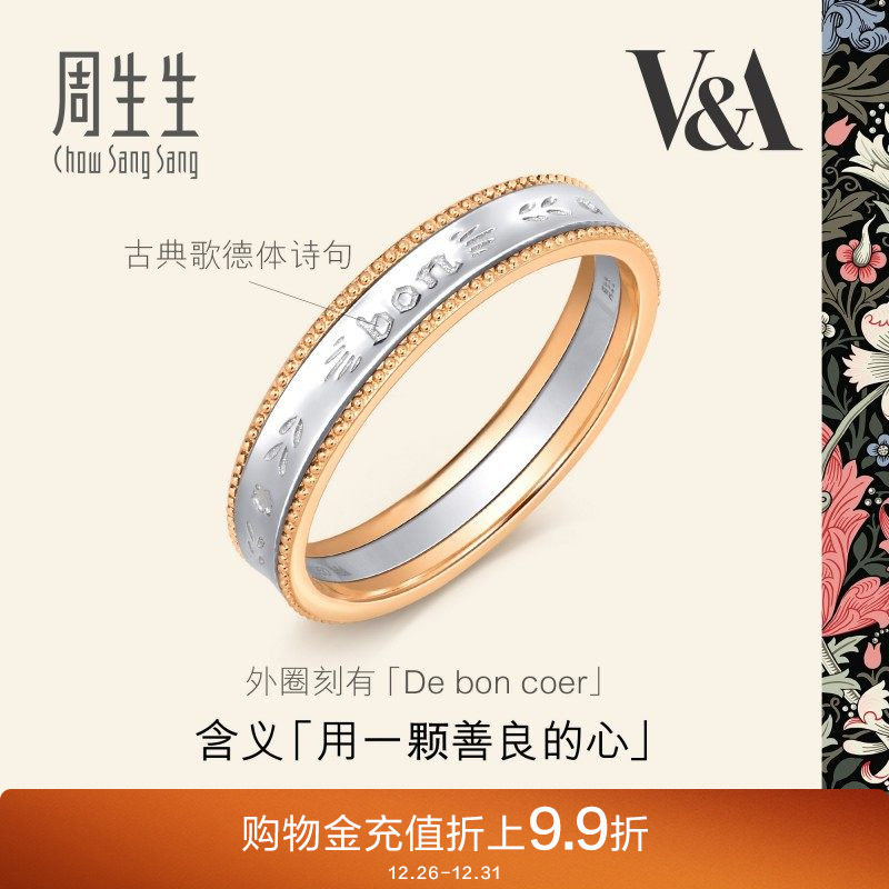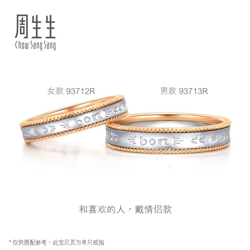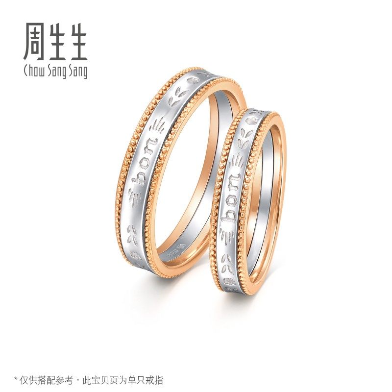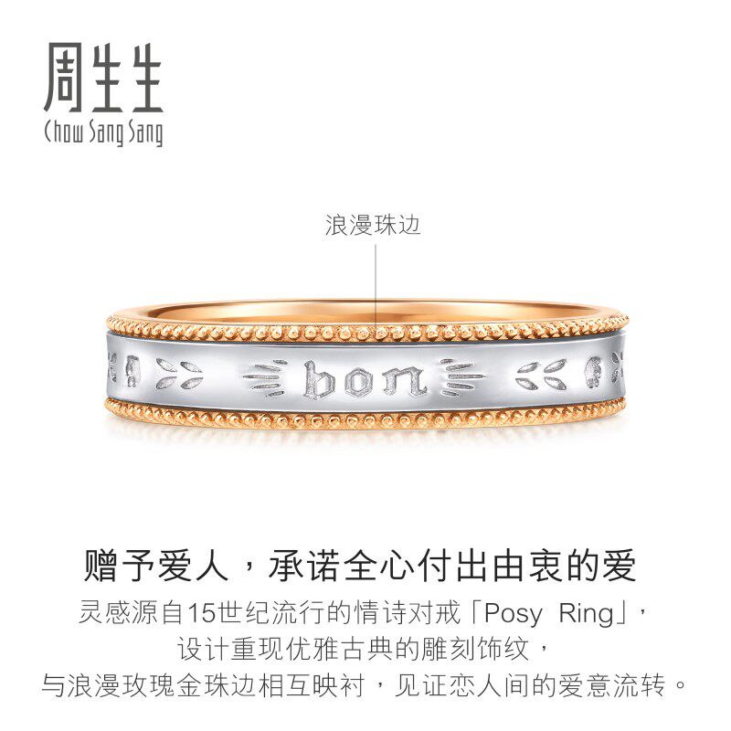 周生生V&A 18K黄金及Pt950铂金情诗戒指对戒男款93713R