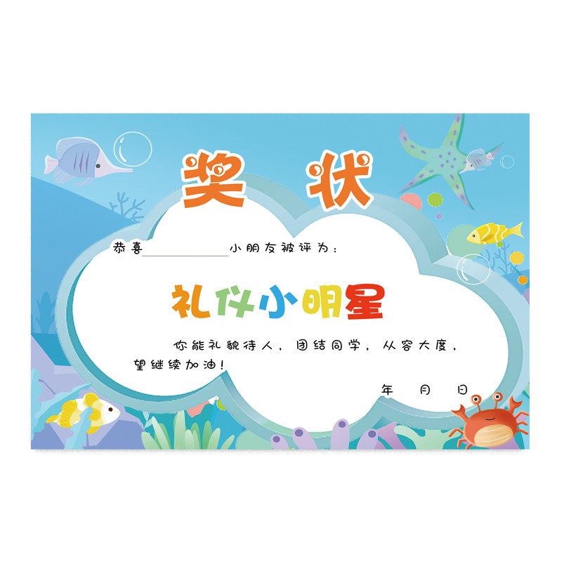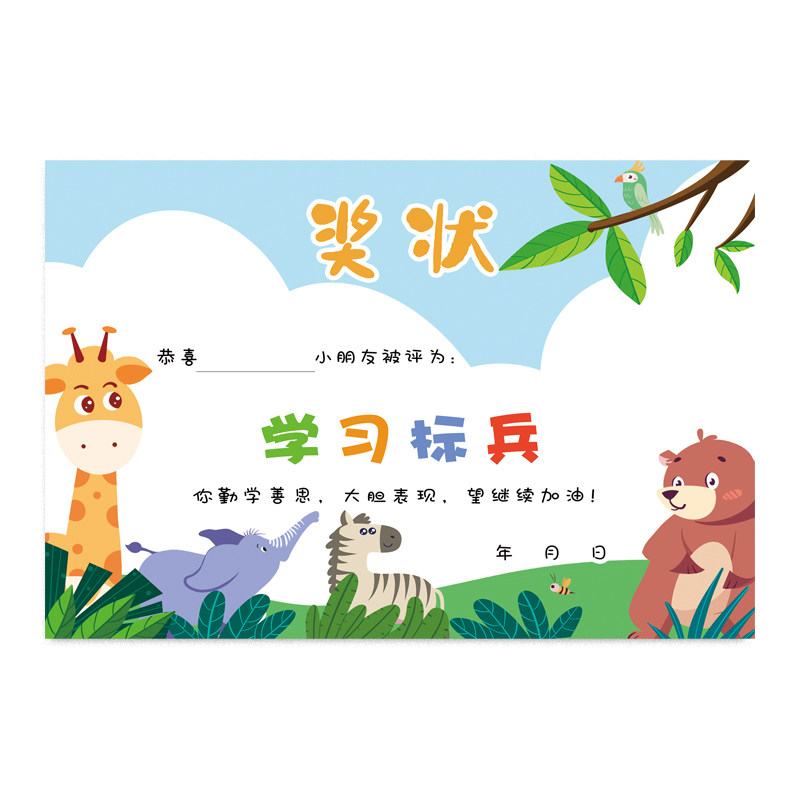 a5幼儿园小奖状 幼儿园学期末奖状班级奖励小奖状 卡通可爱好孩子