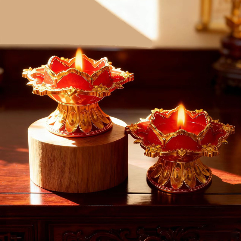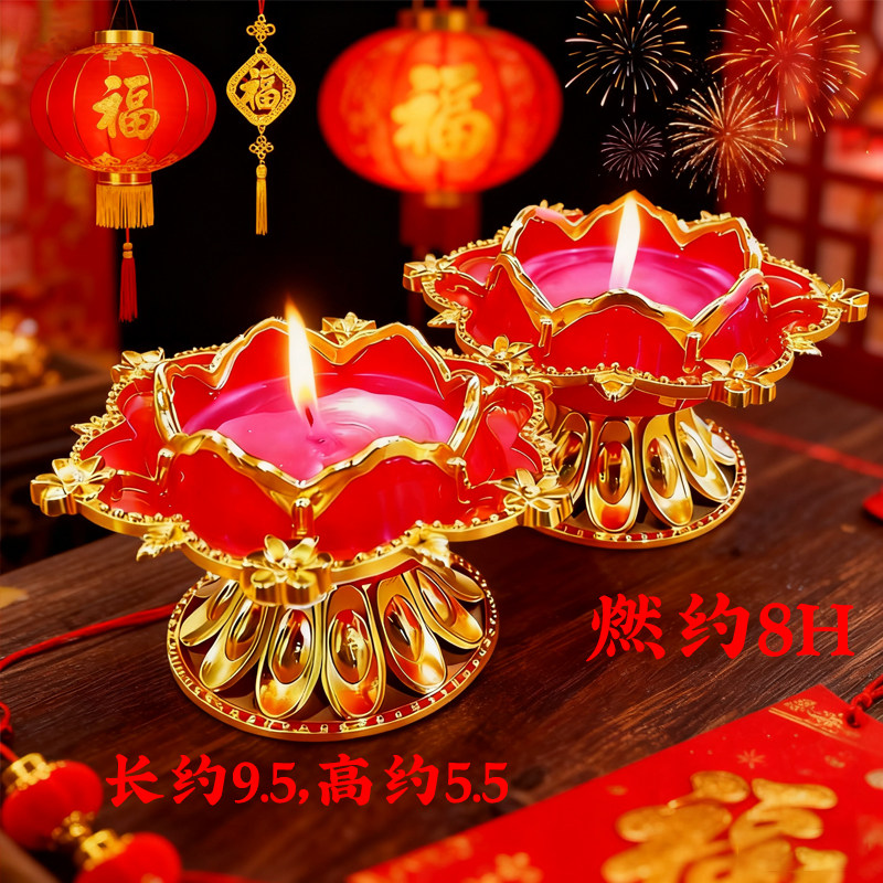 莲花酥油灯家用无烟蜡烛还愿高脚燃8小时供佛莲花灯寺庙无味水晶